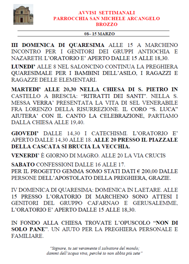 III DOMENICA DI QUARESIMA
