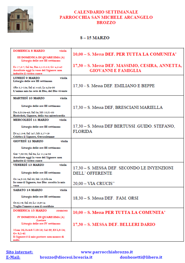 ORARI PARROCCHIALI SETTIMANALI: